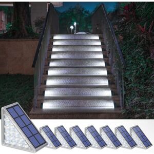 Stylish and Modern Solar Light: Introducing the new innovative triangle solar light from; Design inspired by the stability of the triangle. Use the stable structure of the triangle to achieve the greatest rational use and safety of space. This revolutionary product is designed to provide a bright and welcoming ambiance for any outdoor staircase, steps, terraces, etc. 13 LEDs and Super Bright: Different from other step lights on the market, the solar lights use more (13 LEDs) and high-quality lamp beads, with a highly concentrated light bead lens to provide excellent bright illumination. The larger rectangular shape of the solar panel is a nod to the triangular shape of the stair light, which is designed to capture as much sunlight as possible. It only needs 4-5 hours of charging during the day, and can reach 8-10 hours of lighting at full brightness at night. IP67 Waterproof: The outdoor stair lights boast an IP67 waterproof rating, which means the lights are protected against dust