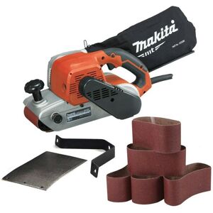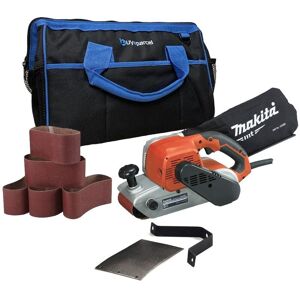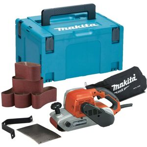 Similar to the Makita 9404 the MT9400 is a robust and reliable belt sander. Provides durable, industrial performance. Features a dust extraction facility with cloth dust bag. Ergonomically-designed soft-grip handle. Flat top for inverted applications, designed to enable flush sanding against walls. Can be connected to a dust extractor. Using the step tool allows you to turn the sander upside down allowing you to use the sander for different applications Supplied with dust bag and an abrasive sanding belt. Features and Benefits Flat top enables inverted applications to be carried out. Designed to enable flush sanding to walls. Ergonomically designed handle with rubberised soft grip fits your hand perfectly to provide maximum control and comfort. Connectable to dust extractor Double Insulation Includes Dust bag Step Tool (to use sander upside down)