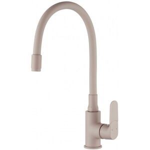 The fashionable and comfortable Invena JOGA PLUS kitchen faucet with a flexible spout with shape memory will allow you to adjust the faucet to your individual needs. It owes its unique appearance to a silicone overlay on the handle in the color of the spout. The battery is equipped with a quick assembly system. Specifications: - Type: single lever standing kitchen sink tap; - Finishing colour: beige; - 35mm ceramic mixer; - Water saving aerator and and 2x 45cm feed hoses.