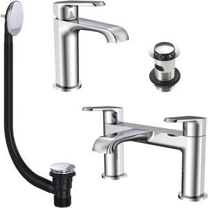 Introducing the Basin Tap and Bath Filler Set with Matching Wastes by Foxheath Ltd. Our basin tap and bath filler sets are shipped via a Three to Five Working Day service. A Next Working Day service is applied to volume basin tap and bath filler sets. This product is delivered in one parcel. Crafted from the highest quality sourced materials Strong & durable construction (Brass, Stainless Steel, ABS) Luxury Polished Chrome finish Precise Water Control: Quarter-turn ceramic disk valves and a 35mm ceramic cartridge ensure smooth and accurate water flow and temperature control Slotted Basin Waste Included: Designed specifically for basins with an overflow, ensuring compatibility, leak-free performance, and easy installation Matching Chrome Bath Waste: Crafted from premium solid metal for long-lasting durability and a coordinated finish that enhances the bath area Flexible Installation: Pre-Supplied flexible tails make setup quick and hassle-free across both basin and bath installations