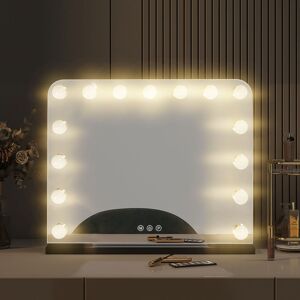 Get ready for your close-up with the Hollywood Makeup Vanity Mirror by Sheonly. This slim-framed mirror features 15 adjustable LED bulbs in three colour modes, providing perfect lighting for all your makeup needs. The bulbs are replaceable, ensuring a longer lifespan than other non-replaceable makeup mirrors. The convenient plug-in feature ensures that the mirror will never run out of power, allowing you to focus on looking your best without worrying about battery life. Latitude Run Finish: Black, Size: 102cm H x 127cm W