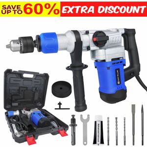 Heavy Duty SDS Plus Electric Rotary Hammer Impact Corded Drill Product Features: ?? 4 FUNCTIONS – 4 Functions&1500W Powerful Hammer Drill: 4 functions include hammer drilling, standard drilling, rotation-chiselling and roto-stop chisel-lock. to demolish brickwork, remove plaster, take off tiles and dig out old grouting. Maximum drilling diameters: 13mm (steel), 32mm (concrete), 42mm (wood). 1500W Electric Hammer Drill engine with high grade components for unbeaten performance & durability. Electric Hammer Drill extremely reliable to its tough casing and robust engine. ?? ADJUSTABLE SPEED – speed selector 0-800RPM and 4000BPM impact rate. Control Vibration System helps keep the drill steady during use. ?? 360° ROTARY HANDLE – 6 Speed Levels. Corded hammer drill features Speed selector 0-800RPM and 4000BPM impact rate. Control Vibration System helps keep the drill steady during use; Speed selector allows you to choose 6 different rotation speeds appropriate for the task at hand. ??