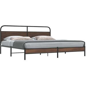If you are looking for a robust bed frame for your bedroom, then this classic bed frame featuring an elegant and timeless design is the perfect choice for you! Robust metal construction: The bed frame is made from steel. Steel is an exceptionally hard and strong material that offers exceptional sturdiness and stability.Metal slats and legs: The metal bed frame is complete with metal slats and centre legs to provide your mattress with much-needed support and breathability.Extra storage space: For your convenience, the guest bed also has an extra space underneath for keeping your storage boxes out of sight.Excellent support: The headboard of the bed base provides you with excellent back support when you sit up in bed to read or watch TV. Good to know:A mattress is not included with this bed. We do offer a various selection of mattresses. You can check our shop for a matching mattress. Colour: Brown oak Material: Steel, engineered wood Overall dimensions: 207 x 166 x 91.5 cm (L x W x H)
