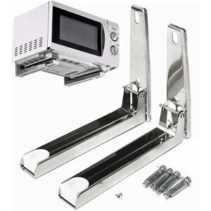 Foldable Design---90 degree locked foldable shelf bracket. Can be folded and placed when not in use. Thick Stainless Steel --- Upgraded version of the microwave rack, made of high quality steel, thickened and widened design, super load-bearing, safer to use. Fixed feet --- Two white plastic fixing slots on the two brackets can be attached to the two fixed feet of the microwave oven to make the microwave oven more stable. More stable -- - The stand is equipped with a safety lock to prevent the stand from falling. The triangle is the strongest structure of the wall mount and keeps it in the most stable state. Tips --- Please read the instructions carefully when installing. Specification : Material: stainless steel Product size: height 25 cm width 3 cm Telescopic support from: 30 cm to 45 cm (approximately) Maximum load capacity: 35 kg maximum (approx.) Color: Silver Package includes: 2 * folding bracket 4 * screws