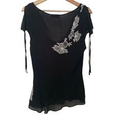 Karen Millen Womens Tailored Sequin Tweed Tie Bow Neck Embellished Mini Dress - Black - Size 12 Uk