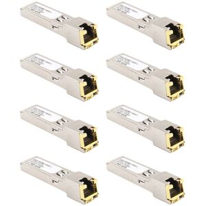 Bi-directional data links up to 1.25 Gb/s 100m transmission over unshielded Compliant with IEEE Std 802.3TM-2002 Compliant with SFP RoHS compliant Access to the IC physical layer via a 2-wire serial bus RJ-45 connector Hot-pluggable SFP footprint Single +3.3V power supply Operating case temperature: 0°C~+85°C Compatible with for Applications: for 1.25 Gigabit Etherne Color: silver Material: metal Package Contents: 8 x SFP RJ45 module Only the above package content, other products are not included. Included. Note: Light reflection and different displays may cause the color of the item in a little different from the real thing. The measurement allowed error is +/- 1-3 cm.