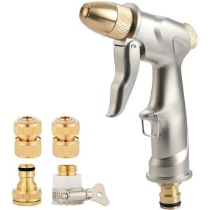 【Thick garden water pistol】the heavy-duty watering gun is made of 100% metal, with a thick zinc alloy body and a fully ground brass nozzle, rust and corrosion resistant, making it resistant to high water pressure and preventing breakage. And it is much stronger and stronger than plastic nozzles and is built to last. 【No leak】Superfine brass threaded interface connectors, better sealing. The one-piece design ensures that the quick connector creates a tight seal to prevent leaks. 【Adjustable nozzles】Multiple modes to meet your different needs. Flexible and adjustable water flow from fine mist, moderate spray and jet by rotating the hose nozzle head from left to right. Note: The largest water output of the nozzle depends on your water pressure. In a certain mode, the water flow from the nozzle is very small. It means the water pressure is too low. Please increase the water pressure 【multifunctional metal watering gun】High pressure watering gun with multiple spray modes, ideal for washing
