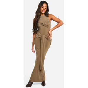 Striking twist-detail at the waist for a flattering silhouette Floor-sweeping maxi length for dramatic elegance Long sleeves and slash neckline offer versatile styling options Figure-hugging ITY jersey fabric with gentle stretch Gathered design creates a luxurious drape effect Make a lasting impression with this show-stopping maxi dress from Boohoo. The eye-catching twist detail at the waist creates a stunning focal point, accentuating your curves and adding a touch of sophistication. Perfect for those nights out when you want to turn heads, this dress effortlessly combines comfort with high fashion. Style it with strappy heels and statement earrings for a glamorous club look, or dress it down with metallic flats and a clutch for drinks with the girls. The versatile slash neckline allows for various jewellery options, while the long sleeves provide coverage without compromising on style. Whether you're dancing the night away or enjoying cocktails at a rooftop bar, this dress will ensure you're the centre of attention in all the right ways.