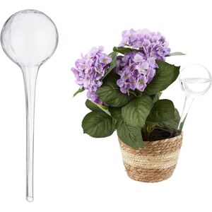 Would the anticipation of your upcoming vacation be much greater, if you knew that your plants are going to survive it? Well, with these 4 watering globes you can make sure that they outlive up to several days on themselves. Every dispenser can be filled with water through the 21 cm long tubes that ensure a well regulated dispersion of liquid. The round tops are tightly closed to ensure that no water can and will evaporate. Watering Globes Set of 4 Details - Diameter per ball: approx. 9 cm - Total length: approx. 30 cm - Pole length: approx. 21 cm - Capacity: approx. 350 ml each - Material: Glass - Weight: approx. 150 g - Transparent - 4 x Glass Watering Globes Water Dispenser for Plants and Flowers - Useful and decorative watering aid - Reinsurance for vacations or weekend trips - Less frequent watering - Relief in stressful everyday life - Water plants for several days - Regulated water dispensing Irrigation Spheres - Easy to Use - Fill them with water and insert them into the