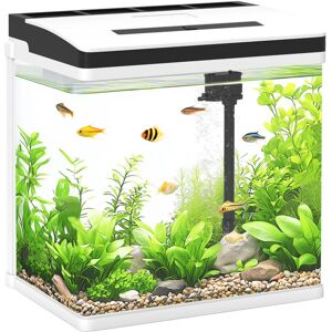 General description Create an aquatic oasis with the PawHut Aquarium Glass Fish Tank. This stunning centerpiece features LED lighting with three modes, allowing you to set the perfect mood. Its self-cleaning system ensures a hygienic environment, while the water pump supports the health of your fish. With a capacity of 28L, your aquatic pets can swim freely, and you can enjoy crystal-clear views through the HD glass. Technical specifications Overall dimensions: 39.5H x 38L x 26W cm Internal dimensions: 34H x 37L x 25W cm Filter tank dimensions: 5H x 18L x 5W cm Water pump power: 2.5W Water pump cord length: 1.1m LED light power: 8W LED light cord length: 1.1m Glass thickness: 4mm Capacity: 28L Compatibility and accessories Suitable for bettas, guppies, mini parrot fishes, shrimp, goldfishes, and similar aquatic pets Includes rainshower-type filter with filter cotton and air supply Installation Assembly required Usage General guideline: 1cm of fish requires 1L of water Under reasonable