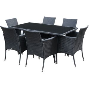 Feature: 7 pieces of rattan garden furniture consists of 1 table and 6 chairs Constructed of high quality steel frame and PE rattan in sturdy build for long lasting use Cushion filled with 5 cm thick and 24D cotton for extra comfort Detachable cushion cover made of 180g/㎡ polyester has zipper for smooth opening and closing Table top with 5mm thick black toughened glass Suitable for both indoor and outdoor use all year round Specification: Colour: Black, Cream White Material: PE rattan, Metal Table Dimension: 150L x 80W x 74Hcm 6 Chair Dimension: 61L x 60W x 85Hcm Cushion Size: 46L x 45Wcm Table Weight Capacity: 80kg Chair Weight Capacity: 180kg Item Label: 841-071Just so you know: this item ships and arrives in separate boxes. Delivery times may vary with each box. Box quantity: 3 1 x Table 6 x Chairs 6 x Cushions 1 x Manual Just so you know: this item ships and arrives in separate boxes. Delivery times may vary with each box. Box quantity: 3