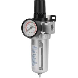 This regulator features a 1/4" thread for universal compatibility, a filter bowl for easy monitoring, and a combination of ABS and stainless steel construction. Increase the accuracy of your spray painting with our air compressor regulator that features a clear pressure indicator for precise adjustments and better control. Whether you're refinishing furniture, painting car paint, or giving a wall a fresh coat of paint, this air compressor regulator is the perfect accessory for both indoor and outdoor painting jobs. For professional mechanics, auto repairers, and DIY enthusiasts, this tool delivers a flawless finish to any spray painting project. Streamline your workflow with this must-have tool that quickly connects to your spray guns and delivers clean, moisture-free air for consistently high-quality results. Compressor Regulator Air Compressor with Pressure Gauge, Suitable for Spray Guns, 1/4" Thread, Oil and Water Separator Specifications: Component: ABS Dimensions: 4*14 cm. Note: