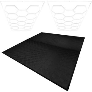 Transform your garage, workshop, or gym into a practical and visually stunning space with our premium vented garage floor tiles and innovative hexagon LED lighting bundle. This all-in-one solution combines strength, style, and functionality for a space you'll love to work in or show off. The vented garage floor tiles are expertly crafted from 100% polypropylene, offering a remarkable 5-tonne weight capacity per tile. This makes them ideal for supporting heavy vehicles, machinery, and equipment, ensuring long-lasting durability even in tough environments. The weather-resistant material stands up to temperature changes and challenging conditions, providing dependable performance for years to come. This pack includes 120 black & 120 grey interlocking tiles and 60 edge pieces, covering an impressive 36 square meters in a simple 15 x 15 configuration. Installation is effortless thanks to a smart interlocking system, while specially designed edges and corners provide smooth, safe