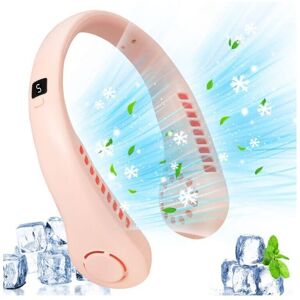Specifications: Product Name: Bladeless Hanging Neck Fan Product Weight: 275g Battery Capacity: 3000mAh Operating Voltage Range: 5V Power: 5W Running Time: 4-16 Hours Interface Type: USB-C Wind Speed: 5 Levels Short press to turn on 1st gear, short press again to turn on 2nd gear, 3rd short press to turn on 3rd gear, 4th short press to turn on 4th gear, 5th short press to turn on 5th gear to generate wind Features This portable bladeless fan has a service life of up to 8-12 hours. 5 wind speeds are adjustable. It features a 360-degree all-round air supply mode, a three-dimensional air outlet, and an up and down air outlet, doubling the freshness again and solving the problem of wind stagnation on the neck and wearing it all. Made of skin-friendly silicone material, it will not cause discomfort in direct contact with the skin. The neck-hanging design is very convenient; whether you are sitting or walking, it will not burden you and allow you to travel light. The noise level is less