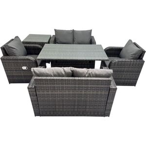 This patio rattan sofa set can be used both indoors and Outdoor,with high quality PE rattan and durable galvanized steel construction for sturdiness and long lasting. Outdoor garden furniture can also be placed on the patio or balcony,The design of this rattan furniture is a perfect blend of country chic and modern minimalism, adding an elegant touch to your house. Set dimensions: •2 x Reclining chairs Size: 74W x 69D x 79H cm •2 x Love Sofa Size: 124W x 67D x 79H cm •1 x Dining table size: 140L x 80W x 70H cm •1 x Side Table Size: 65L x 65W x 66H cm Dark Grey Mixed rattan with dark grey fabric .Color may vary due to light or monitor .we are unable to return the item due to this problem .Please contact us before purchase if you have requirements on color saturation . The 2 armchairs are adjustable, you can adjust the inclination of the chair back from 90°-130° through the button .> Items Comes Flat Packed And Easy to Assemble,Sturdy Galvanized Steel Tube Metal Frames With Powder
