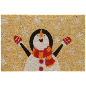This beautiful entrance mat reliably keeps your interior clean. The weatherproof shoe mat made of coir can be placed indoors or outdoors. Thanks to the non-slip underside, the doormat sticks firmly to the floor when you step on your shoes. In addition to its practical properties, the doormat also impresses with its attractive design: The cool snowman motif fits perfectly into the winter and Christmas season and ensures a friendly welcome for your guests. Note: Coir fibre is a natural material and can vary slightly in the structure and colour of the fibre. Coir Doormat Details - Dimensions H x W x D: approx. 1.5 x 60 x 40 cm - Weight: approx. 1.4 kg - Materials: Coir fibre, PVC- Colour: Multicoloured Non-Slip Doormat for Doors and Backdoors - Suitable for indoor and outdoor use - Helps keep dirt out of the flat or house- Made from robust, weatherproof coir fibres- PVC anti-slip bottom- Ideal for winter and Christmas due to snowman motif Included in Delivery - 1x Doormat - Decorative