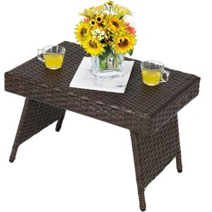 This patio rattan coffee table will be a fabulous addition to outdoor occasions. The solid steel frame wrapped with exquisite PE rattan enables the coffee table to accompany you for a long-lasting time. And the elegant appearance makes it fit well to different outdoor places, such as backyard, poolside and balcony. Moreover, there is a PVC board under the tabletop, so the weight capacity is highly improved. The quick-folding design and light weight allow you to effortlessly store or carry the table. Other than that, each leg is equipped with an adjustable foot pad, so the table wont easily scratch the ground. If you are looking for a portable coffee table for outdoor relaxation, this folding wicker coffee table will be a great choice. Costway Wicker Coffee Table Folding Outdoor Patio Rattan Side Table in Brown