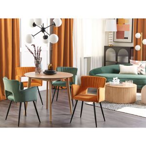 These chairs are all about modern design, they present a retro-inspired silhouette mixed with functionality, high-quality materials and comfort. A padded seat comes with armrests and a backrest with eye-catching cut-out detail. The smooth velvet upholstery gives depth and sheen to the colour, complementing slanted, powder-coated black legs. Vertical tufting on the inner back lends chairs an elegant touch. With that universal design, this seat would look fantastic by the dining table in a home office or bedroom. George Oliver Upholstery Colour: Pink