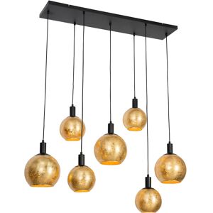 QAZQA Design Pendant Light Black with Gold Glass 3-Light - Bert If you're looking for the perfect pendant light for your designer interior, then Bert is what you need. This gold/brass pendant light with a black finish is made of glass and steel, and the glass shade with a gold coating creates a warm and cosy effect. Bert, with its three light points, provides enough light and atmosphere in any room. The lamp has a diameter of 65 cm and a height of 156 cm. Conveniently, you can adjust Bert in height to a minimum of 16.5 cm. Don't forget to order three E27 light sources yourself, as they are not included. Want to adjust the mood? Bert is dimmable, so you can decide how much light you want (dimmer not included). Choose Bert and complete your interior with style and warmth. Bulb holder: E27 . Max 3 x 40 W, 230 V Suitable for: LED Connecting voltage: 220V/230V Protection class: IP20 Dimmable, dimmer not included,No, without cord and plug Lightsource: Exclusive The QAZQA Design Pendant