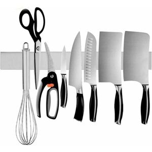 MULTI-PURPOSE MAGNETIC HOLDER: The 40cm stainless steel magnetic knife holder can easily hold all metal objects in your kitchen, office, laundry room or garage, making your home more tidy and practical. /p> SAFE AND SECURE: This magnetic knife bar with a strong magnet ensures that even the largest knives are hung securely. EASY INSTALLATION: The magnetic knife bar comes with self-adhesive tape, you can quickly and easily attach it to almost any surface, without drilling or damaging your tiled wall. p> SPACE SAVING: By mounting the utensil holder on the wall, you can save more space on your countertop and cook more easily. Make your kitchen cleaner. PREMIUM STAINLESS STEEL: The magnetic knife holder is made of high-quality stainless steel for a long-lasting shine, rust-proof, durable and easy to clean. The modern design of the magnetic knife holder is both a valuable helper for your kitchen and a decorative element.