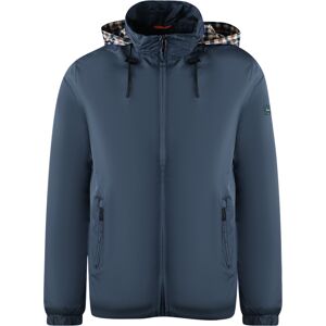 This Aquascutum Navy Blue Lightweight Jacket features Brand Hood, with the signature print. Its windbreaker fabric also provides excellent protection against the elements Central Zip Closure, Zip Closure Pockets, Regular Fit Branded Print On Inner Hood, Plain Jacket, Hooded Coat Thin Coat, Pulls On The Hood, 100% Polyester Style Code: JK007 11