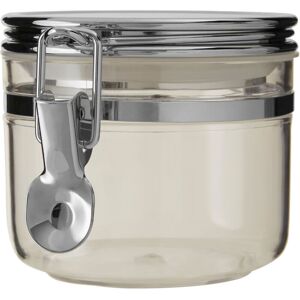 This canister has an airtight lid with a silicone inner rubber lining to keep contents fresh. The sturdy silver finish clip lock is designed to securely clutch the round lid while giving the transparent surface a touch of metallic accent. The lid features a mirrored inner that adds to the jar’s reflective visual appeal. Complementing a traditional setting, the charming sugar canister will make sure your everyday essential is close to hand while making a stylish impact in your kitchen. The dimensions of this product are Height 10 cm x Width 19 cm x Length 13 cm Features of this canister include: -Makes your kitchen organised and tidy -Dimensions are H10 cm x W9 cm x L13 cm -Airlight lid -Small size -Silicone inner rubber lining -Sturdy silver finish clip -Metallic accent -Modern and elegant -Textured look -Easy to clean -Everyday essential -Ideal as a gift To clean this product, soak in warm soapy water and rinse and dry. Do not use abrasive cleaners