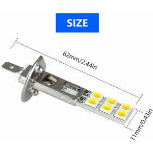 Wonderful Performance: Adopt imported chips, ensure stable performance and long service life. Energy saving, environmental protection, through strict testing, use safer driving in the car. Features: Bulb Size: H1, super amazing lighting. Color Temperature: 6000K White; Lumens: 1800LM; Operating Voltage: DC 12V to 24V; Low power consumption. Application: Used for Headlight/Fog Light/Daytime Running Light DRL; Beam Type: 360° Beam Angle. Functions: No delay to light up. Longer on/off response time; Lifespan: 80,000 working hours. Plug and Play: The model is the same as the factory light, no need to change the car's route, just plug and play, modification required. LED Fog Light Type Model H1-12SMD-5050 Light Source Power 1 (W) Voltage 12V-24V Current 12 (A) Light Source 5050 Color Temperature 6000K Lumens 1800LM Material: Aluminum alloy Color: Silver Package Contents: 16 x H1 Fog Lights Only the above package content, other products are not included. Note: reflection Light shooting and