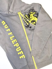 Material: 50% Cotton, 50% Polyester. Design: Printed. 153gsm. Hood Features: Double Layer, Drawstring, Grown On Hood. Hem: Fitted. Cuff: Fitted. Neckline: Hooded. Sleeve-Type: Long-Sleeved. Pockets: 1 Kangaroo Pocket. Fastening: Pull Over. 100% Officially Licensed. Heavy Duty. Packaging: Swing Tag. Harry Potter Men's Hufflepuff Sport Emblem Hoodie in Grey Size: Large