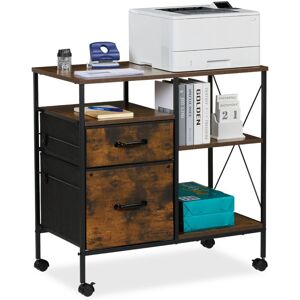 Effective work starts with a tidy workspace. With this practical rolling filing cabinet, essential items are always exactly where you need them. The top shelf provides ample space for a printer or coffee machine, while additional copy paper and other office supplies can be stored in one of the two drawers or four compartments below. Thanks to its castors, the office shelf unit is mobile and can be easily moved aside. Rolling File Cabinet in Detail - Dimensions H x W x D: approx. 67 x 100 x 40 cm - Drawer dimensions H x W x D: approx. 28 x 35 x 38 cm - Dimensions of compartments H x W x D: approx. 26/28.5 x 28.5 x 39 cm - Load capacity of upper shelf: approx. 20 kg - Load capacity per drawer/shelf: approx. 5 kg - Weight: approx. 14.7 kg - Material: MDF, polyester, steel - Colour: Brown, black Filing Cabinet on Castors - Rolling container is ideal for the office or study - Top shelf offers plenty of space for a printer or coffee station - 2 drawers and 4 compartments with generous