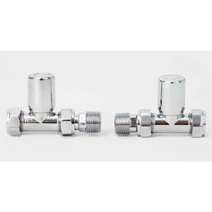 Description These top quality valves are chrome plated solid brass, and are finished to the highest standard - perfect for any radiator or towel rail installation. They're designed for use with 15mm pipework and fit to ½" BSP connections. Select an appropriate pipe reducer to use with 8mm or 10mm pipework. Angled or Straight? If you're using these valves on a towel rail with the water connections on the bottom of the towel rail uprights facing the floor, then your heating pipes should be coming out of the wall. If your pipework is coming up from the floor then you will need to use an straight valve. What's Included? 1x on/off valve 1x lockshield valve Technical Information Chrome plated solid brass body and plastic cap Max working pressure: 13 bar Water pipe connections: 15mm compression Connects to: ½" BSP radiator or towel rail Guarantee: 5 years