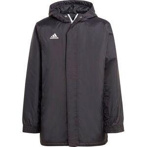 Stay match-ready in this juniors Entrada 22 football jacket.Its made of durable woven fabric and stuffed with an insulating polyester fill to keep you warm.The iconic adidas Badge of Sport adds a sporty touch, and zip pockets keep your belongings secure.Long enough to cover your shorts, itll keep you warm until you get the nod to enter the action.Made with 100% recycled materials, this product represents just one of our solutions to help end plastic waste.FEATURES:-Regular fit.-Full zip with lined hood.-Shell:100% recycled polyester taffeta.-Fill:100% recycled polyester insulation.-Front zip pockets.-Storm flap with snap closures.-MADE IN PART W RECYCLED MATERIALS.