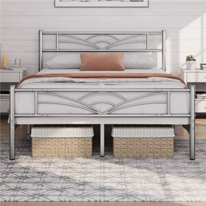 Graceful and sturdy, this metal bed frame features a sleek silhouette and cloud-inspired headboard. Crafted from durable metal with reinforced legs, it ensures stability without a bulky box spring. Non-slip foot caps and corner braces provide a quiet, restful sleep. The under-bed space keeps your bedroom tidy and organized. Yaheetech Size: Single (3'), Colour: Silver