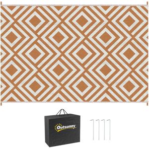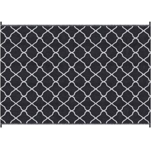 Set up your own activity base for camping or other outdoor activities. The foldable rug is specially designed for outdoor use like camping, picnic, road tour, etc. It's widely suitable for camper vans, RVs, the beach, gazebos, patios, playrooms and anywhere you need it. The tough material resists water and UV, which is anti-fading and provides protection from moisture from ground. Furthermore, just flip it over to update the look and style! Be the envy of your friends! OUTSUNNY 182x274cm Reversible Outdoor Rug Portable Plastic Straw RV Camping Mat in Black Size: 180 cm x 270 cm