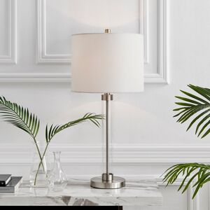 Our Aneko table lamp is a simple, chic and elegant modern lighting piece! Featuring a slender silver stand housed within a hollow clear glass tube, sat on a sturdy silver base and topped with a luxurious fabric lampshade. The silver finial peeking out of the top of the shade is a nice addition that adds a bit of flair. The combination is timeless and will look great with any home style from minimalist to maximalist, from retro vintage to super modern. Perfect for any desk, table or console. Stands 71cm tall, this is a large lamp that will make a statement without overwhelming your space. Features white corded cable and rocker switch. Requires one 60W E27 bulb, which is included. Fairmont Park Shade Colour: White