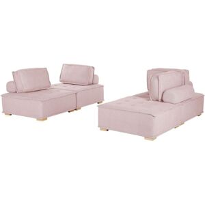 Pink Sectional Sofa Set. Make your living room even more comfortable, and complete its look with a modular sofa set. Fully upholstered in easy-care fabric, the pieces feature solid wood legs equipped with felt pads for extra stability. They boast the timeless button tufting, which together with the classic piping, offers a traditional look that goes perfectly with minimalist and Scandinavian interiors. The backrest features a thickly padded cushion with a removable cover, that can be removed to uncover a smaller one perfect for lounging. Each module has inbuilt connectors to make sure the whole set stays together. Details: Product Type: Modular Sofa Style: Modern General Color: Pink, Brown Material Type: Fabric Main Material: Fabric Additional Material: Rubberwood Filling Material: Foam Material Composition: 100% Polyester Shape: Rectangular Arm Style: Armless Fabric Upholstered Back: Yes Leg Caps/ Pads: Yes Pattern: Solid Seat Construction: Wood Seat Foam Density: 28 kg/m3 Seats Up