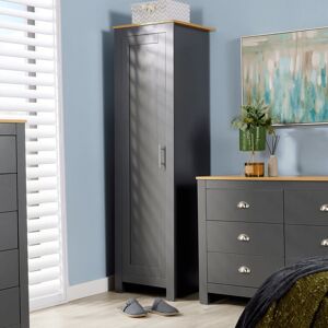 Crafted to high-quality standards, this one-door bedroom wardrobe is a great addition to any home. With its painted white finish and oak top, it is contemporary in style and will complement pieces from the rest of the matching range. The frame is slim fit and will suit a smaller space. The wardrobe features a hanging rail and internal shelves. 17 Stories Finish: White