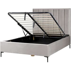 Glam Buttoned Bed Frame with Storage. Add a touch of glamour to your bedroom with this elegant bed frame. The piece seamlessly blends vintage forms with modern influences which makes it ideal for contemporary as well as retro interiors. It features a durable wooden construction and polyester velvet upholstery in a grey tone. The storage placed under the slatted frame is easily accessible and hold plenty of space. The bed is decorated with a classic, button tuft and nailhead trim. Details: Product Type: Double Bed Style: Retro General Color: Grey, Silver Material Type: Fabric Main Material: Velvet Additional Material: Pine Wood Storage Material: Nonwoven Fabric Material Composition: 100% Polyester Fabric Upholstered Back: No Storage Type: Ottoman Storage: Yes Dimensions: Headrest Dimensions: 170x142 Width: 170 cm Storage Dimensions: 142x199x23 Length: 217 cm Height: 144 cm Sleeping Surface: 140x200 cm Weight: 59 kg Weight Capacity: 150 kg Offer Includes: 1 x Bed Frame with Storage, 1 x