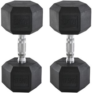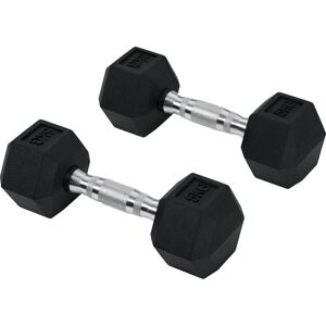 This pair of hexagon dumbbells with rubber is perfect for your fitness regime, suitable for home, gym and office exercise. Each weight is built with metal and rubber, which is durable and not easy to scratch the floor. The knurl guarantees your safety when you do alternating dumbbell curl, overhead shrug, dumbbell triceps kickback, etc. It's an ideal way to make exercise routine with the dumbbells. HOMCOM 2x5kg Rubber Dumbbell Sports Hex Weights Sets for Home Gym Fitness Workout in Black Size: Standard