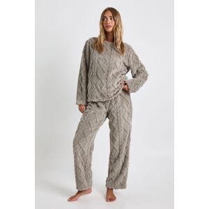 Cosy cable knit jumper with polo collar Wide-leg trousers for effortless comfort Relaxed fit co-ord set for versatile styling Long sleeves and ribbed cuffs for added warmth Soft acrylic fabric for a luxurious feel Embrace laid-back luxury with this chic cable knit co-ord set from Boohoo. The polo collar jumper adds a refined touch to the cosy ensemble, while the wide-leg trousers offer both comfort and style. Perfect for casual outings or relaxed weekends at home, this set can be dressed up or down with ease. Layer with a leather jacket and pair with trainers for an edgy daytime look, or style with heeled boots and statement jewellery for a night out with friends. The versatile nature of this co-ord allows for endless styling possibilities, making it a must-have addition to your wardrobe. Whether you're lounging at home or meeting for a casual brunch, this set promises to keep you looking effortlessly stylish and feeling utterly comfortable.