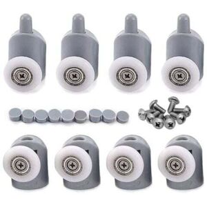 Shower Door Roller Set of 8: Includes 4 upper rollers and 4 lower rollers, 8 in total; comes with screws and a plastic cover. Suitable for glass shower doors, shower enclosure doors, massage cabin doors, or sliding furniture accessories. Shower Roller Material: Made of brass and ABS plastic, sturdy and durable. Dimensions: The wheel size is approximately 23 mm in diameter, 6 mm in width; the maximum glass thickness is 6 mm; the distance from the center of the mounting hole to the edge of the glass is approximately 6 mm. Easy to Slide: The bathroom slider is easy to move and install, keeps the door balanced and allows the door to slide with minimal effort.