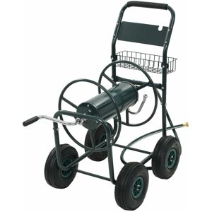This garden hose trolley is an ideal tool for you to store your garden hose in an organised way. The garden hose carriage is made of steel which makes it sturdy and durable. Moreover, the co-rotating hose organiser can prevent twisting as well as knotting of the hose. The hose reel cart has 4 anti-slip rubber wheels which make the cart transport easily and move steadily. The hose cart has a basket which allows you to put your gardening tools in it. This product needs assembly. Colour: Green Material: Steel Overall size: 95.5 x 55 x 97 cm (W x D x H) Hose length: 194 cm Winding capacity: 75 m With anti-slip rubber wheels With a basket SKU: 143777 Read all instructions carefully before use. Do not load more than 300ft (91.4m) of hose, distribute the hose evenly over the surface of the Drum assembly. If any parts are damaged, broken or misplaced, do not use the hose reel cart until the parts are repaired or replaced. EU responsible party Haba Trading B.V. Mary Kingsleystraat 1 5928SK