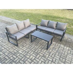 This patio lounge sofa set can be used both indoors and outdoors,with high quality aluminium Frame construction for sturdiness and long lasting. Outdoor garden furniture can also be placed on the patio or balcony,The design of this aluminium garden furniture is a perfect blend of country chic and modern minimalism, adding an elegant touch to your house. Set Dimensions: • 2 x 3 Seater Sofa: 166W x 73D x 78H cm • 1 x Oblong Coffee table : 97L x 52W x 51H cm Dark grey powder coated with dark grey fabric .Color may vary little due to light or monitor .we are unable to return the item due to color problem .please contact us before purchase if you have requirement on color saturation. Items Comes Flat Pack And Easy Assemble, Alloy Aluminium Frame With Powder Coating To Prevent The Rust This Set Was Completely Made By Handmade, Aluminum table top Without glass, 9 CM Thick Seat Cushion With Soft Pillow Back Cushion Gives You More Comfort Low Maintence ,Removable Cushion Cover And Easy Move To