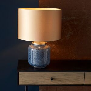 This unique table light features a mottled glass base, with contrasting matt antique brass pleated metal work and gold satin shade. Surely will be an eye-catching addition to any room. FEATURES: * Table lamp * Mottled glass base * Matt antique brass finish * Gold satin fabric shade * Takes 1 lamp * Switched SIZE: * Height: 48.5 cm * Diameter: 36 cm BULB: * Requires 1 x 60 watt max Edison Screw GLS (not included) * Compatible with LED lamps