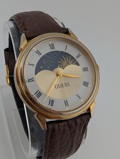 The Guess Moon Phases Crystal Stud Earrings UBE01194YG are created in stainless-steel. These gold-tone earrings feature a GUESS logo moon motif with a claw set white sparkling crystal alongside. They are completed with a post butterfly back fastening & measure approximately 1cm in diameter.
