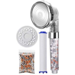 Filter Shower Head: Two types of mineral stone beads (replaceable with PP cotton filter) form a high-density multi-layer filtration system. Softens hard water, removes impurities, purifies water, and makes your skin and hair smoother and softer. Three-Spray Shower: Massage, Rain, and Jets. Three adjustable spray patterns, perfect for adults, children, and pets, for an optimal shower experience. High-Pressure Shower Head: Stainless steel water outlet panel. Revolutionary micro-nozzle technology reduces the size and density of outlet holes, increasing water flow by up to 200%, increasing water pressure and saving up to 30% water. Ideal for low-pressure piping systems and RVs. Sturdy Design: High-quality, sturdy polycarbonate (PC) tubing, 10 times more impact-resistant than plastic, scratch-resistant, lightweight, and leak-proof. Easy Installation: Universal standard interface, compatible with all standard-sized shower hoses and arms. No plumber or tools required, just screw on the hose