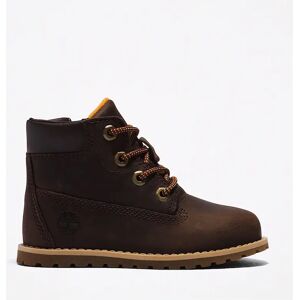 These stylish Brown Timberland Pokey Pine Boots are made especially for children. These boots are quick and easy to put on, due the zip on the side. Featuring Sockliner, Splash Blaster™ for stain protection, and Comfy OrthoLite® footbed, your child's little feet will look adorable in these Timberland mini boots! Features: Nubuck Upper Lining: Synthetic Insole: Synthetic Sole: Rubber