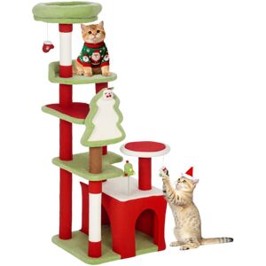 Celebrate the season with your pets using this Christmas-themed cat tree in festive red and green. It's a playground for cats to play, jump, scratch and relax. Multiple platforms let them curl up or watch their surroundings, while the cat house offers privacy. Energetic cats can swipe at hanging toys and scratch the board. Designed with a wide base and anti-slip straps, it remains stable, making it great for up to two cats under 5kg. Specifications: ● Colour: Green, red, white and off-white ● Material: Particle board, plush (100% polyester), PP cotton and sisal ● Overall dimensions: 120H x 45W x 40D cm ● Lower cat perch: 8H x 33L x 24W cm ● Upper cat perch: 7H x Φ30 cm ● Cat house: 28H x 27W x 40D cm ● Door hole: 21H x 17W cm ● Second platform: 34W x 40D cm ● Round jumping platform: Φ24 cm ● Third platform: 24W x 40D cm ● Post: Φ5.5 cm ● Scratching board: 27H x 24W cm ● Base: 45W x 40D cm ● Sisal rope diameter: 3 mm ● Suitable for cats up to 5 kg (recommended for 1-2 cats) ● Fabric
