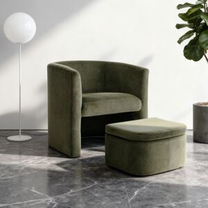 This space-saving accent chair offers a comfortable seating experience. Soft lambswool fabric covers a sturdy solid wood frame, and a storage stool is hidden beneath the seat, neatly tucked away when not in use. Wade Logan® Body Fabric: Khaki Velvet