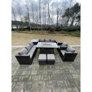 This outdoor garden furniture sofa set has plenty of space for 10 people to sit, with tempered glass dining table to hold food, drinks and more, a perfect addition to your patio, garden, backyard, pool and other indoor and outdoor spaces. Set dimensions: 1 x Big Footstool size:65L x 65W x 34H cm; 2 x Small footstools dimension40L x 40W x 34H cmFully Assembled) 1 x Chair Size: 74W 69 D 79 H cm; 1 x 3 Seater sofa with double armrest: 162L x 67W x 79H cmFully Assembled) 1 x 3 Seater sofa with single armrest: 157L x 67W x 79H cm (Semi-Assembled) 1 x Rectangular Dining Table Dimension: 140 L x 80 W x70 H cm (Transparent tempered glass ) Dark grey mixed rattan with dark grey fabric .Color may vary due to light or monitor .we are unable to return the item due to this problem .Please consult us before purchase if you have requirements on color saturation. the product is delivered on pallet, to kerbside only. Fimous 10 Seater Outdoor Rattan Garden Furniture Set with Rectangular Dining Table 3 Footstool Armchiar Wicker Corner Sofa Set in Dark Grey