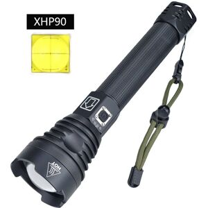 [Extremely Bright:] The LED flashlight uses the latest generation XHP90 LED chip with a lifespan of 50,000 hours and produces an ultra-high output of up to 26650 lumens. [3 Modes & Focus Adjusted:] Works High/Low/Strobe total 3 kinds of lighting modes. Besides, the super bright LED torch can zoom in to focus objects as a preview or zoom out to scan a large area as a projection by pulling the torch head. Meet your different lighting needs. USB Rechargeable & Power Display: The large torch can be charged via USB socket, etc. 5v2a adapter is better. In addition, there are 4 indicator lights above the switch to clearly see how much power is left. Please remove the plastic film from the batteries for the first time. Otherwise, the connection cannot be made well for charging. Waterproof and Durable: The waterproof tactical flashlight with IP65 protection class allows for convenient use in various extreme weather conditions. The sturdy aluminum housing and shock resistance withstand rough